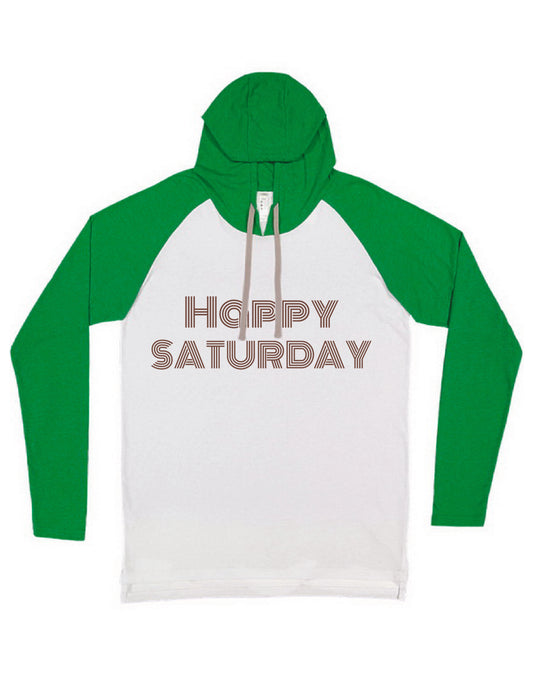 Happy Saturday Clothing Co. "Happy Saturday" White & Green Hooded Raglan Long Sleeve Tee