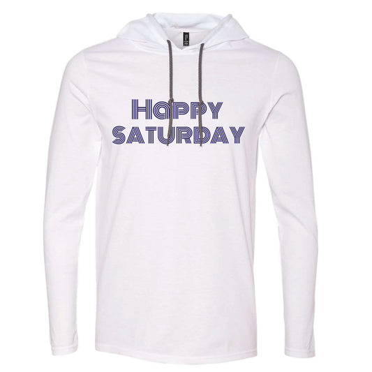 Happy Saturday Clothing Co. "Happy Saturday" White Hooded Long Sleeve Graphic Tee